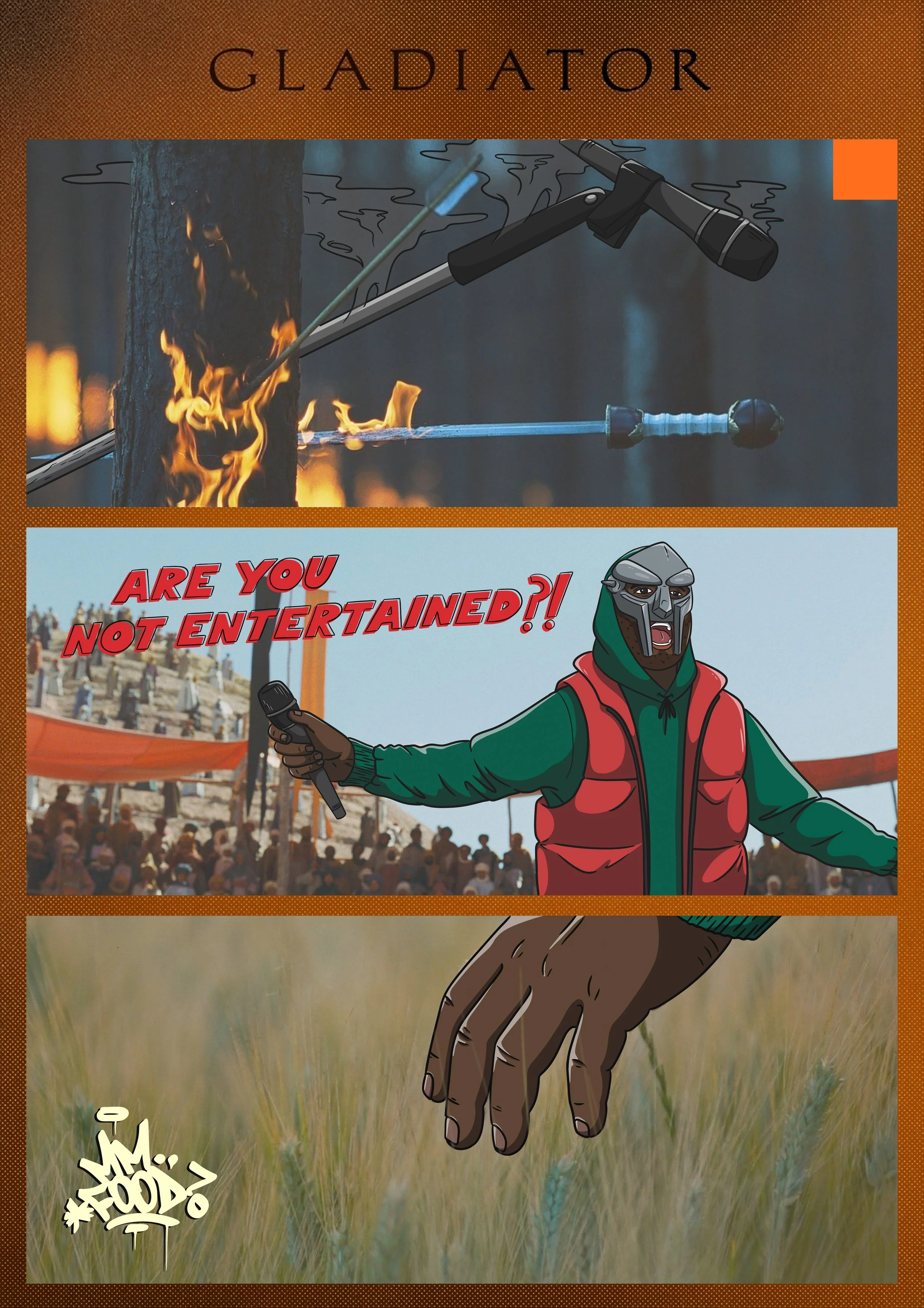 A piece that I designed for myself to hang based on the combination of one of my favourite movies and favourite artists, MF Doom, known for donning the iconic mask on stage. The three sections of the design mark three pivotal points in the film and also each have references to a different one of MF Doom’s albums.