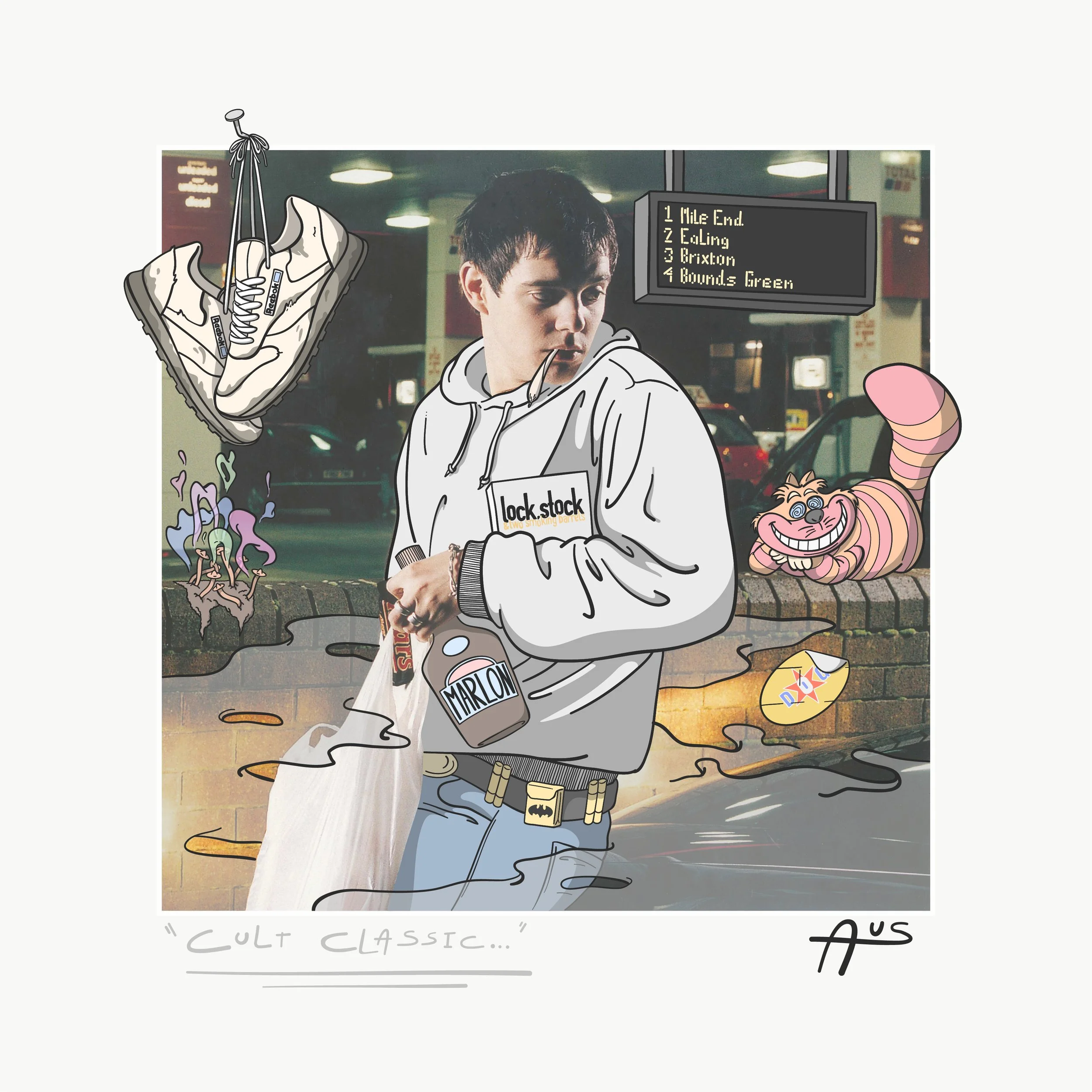 A piece that I was commissioned to design for a client who is a massive fan of the UK musical project, The Streets, led by vocalist and instrumentalist Mike Skinner. The piece is a combination of an image from Skinner’s first album with a bunch of different illustrations on it which all depict different lyrics from the album itself.